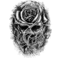 La fusione della rosa con il teschio rappresenta la dualità della vita e della morte, un connubio tra la fragilità della natura e l'immutabile ciclo della vita. I petali della rosa sembrano mescolarsi con le ossa, creando un'immagine potente e affascinante.